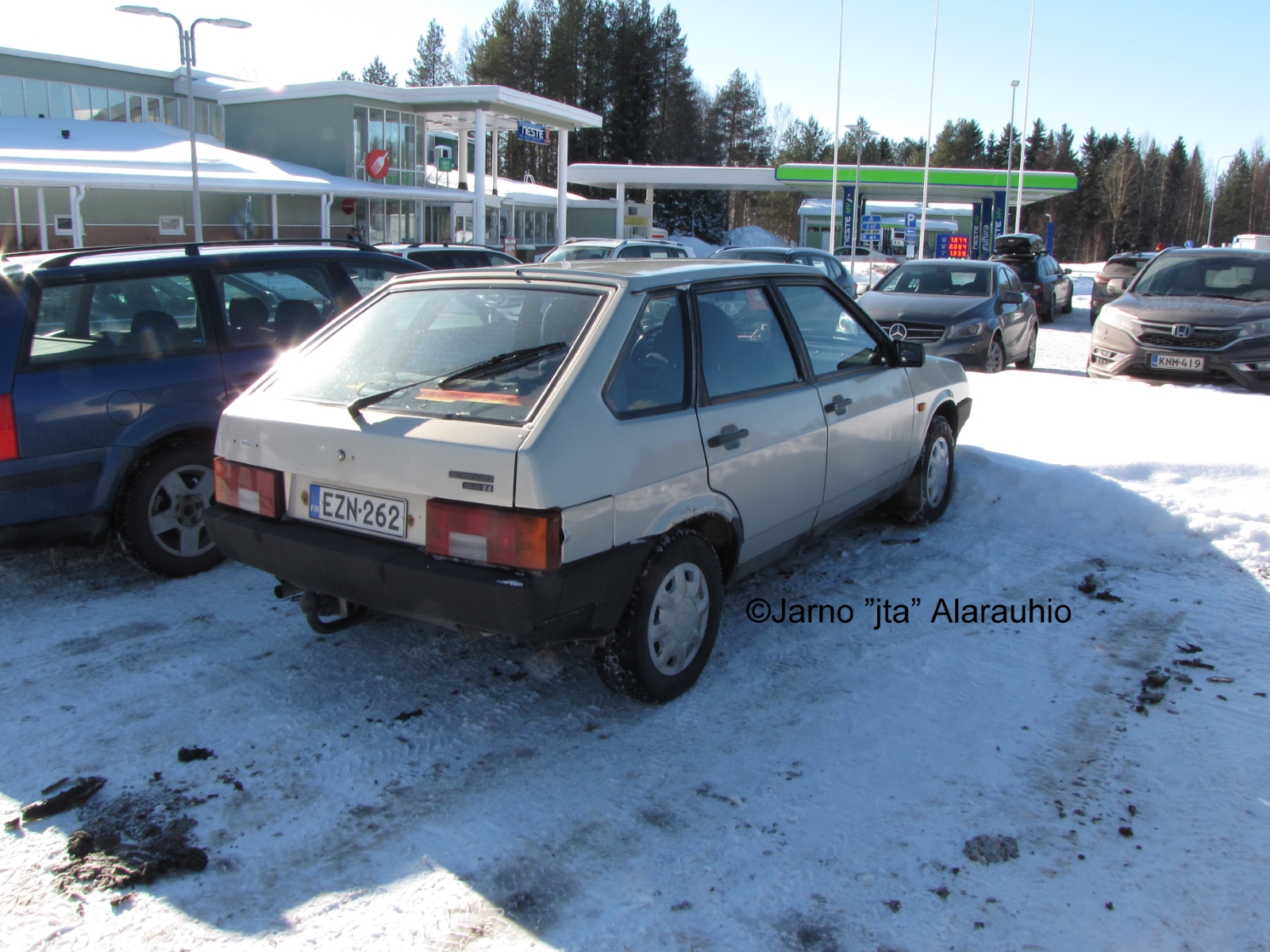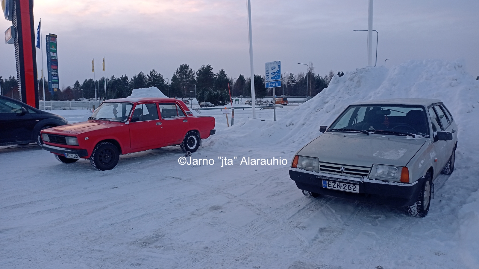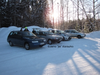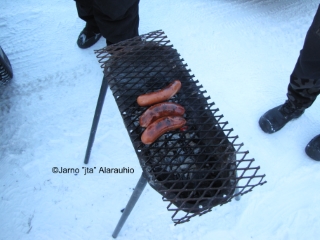 Helmikuussa paistelimme makkarat Ouluntullin Nesteen parkkipaikan reunalla.