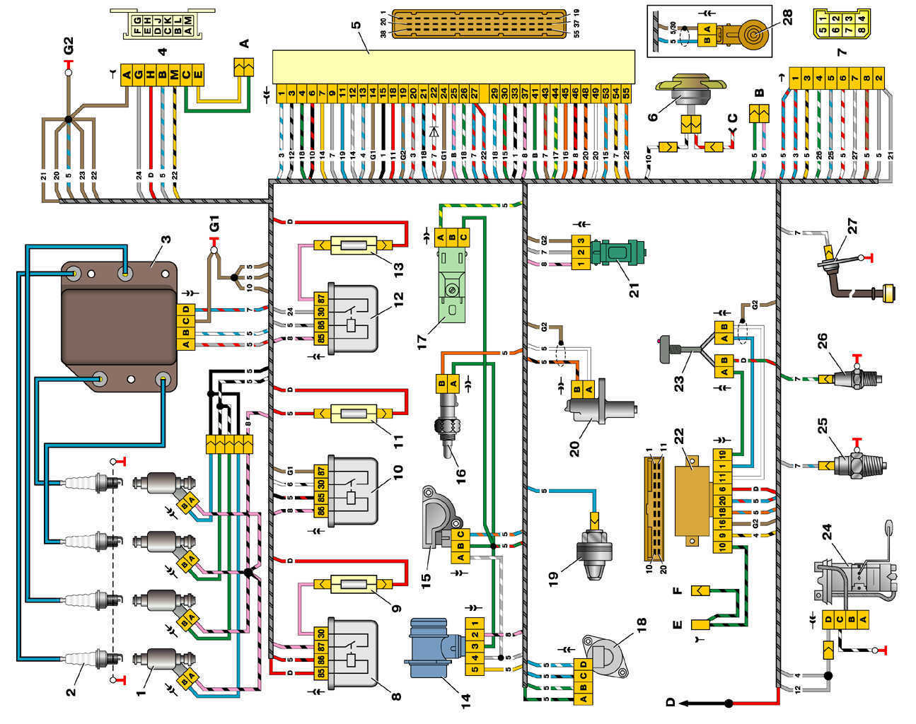 GM-ruiskutusjärjestelmän kytkentäkaavioita: